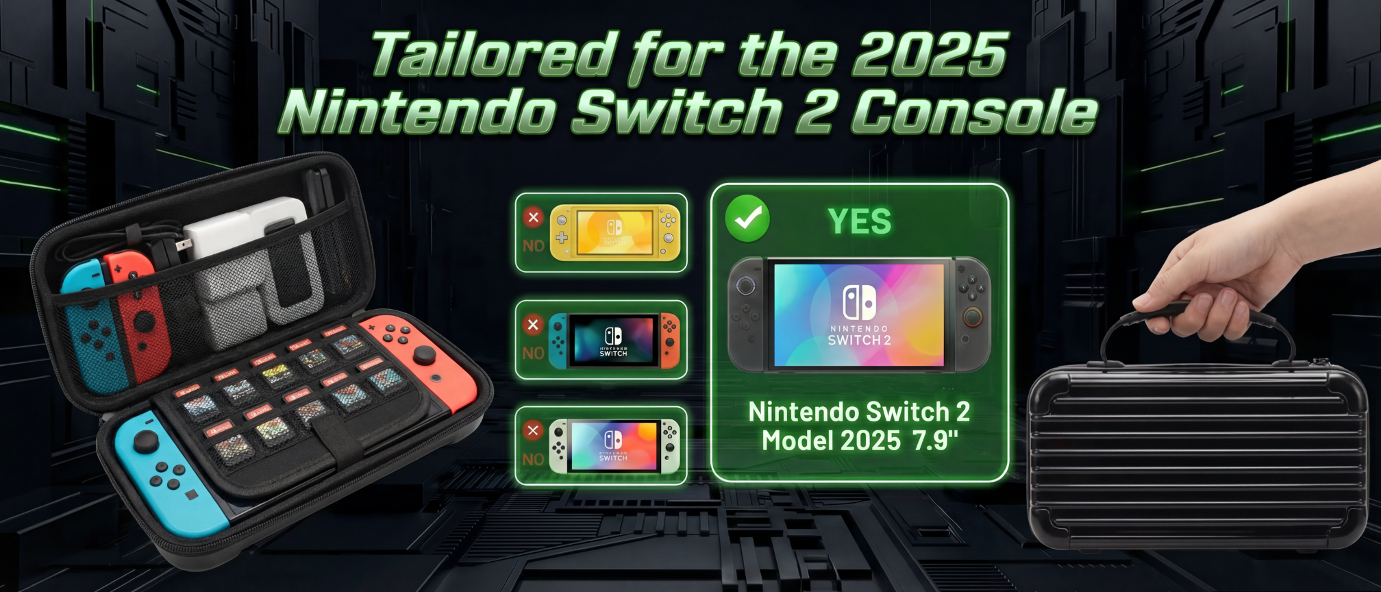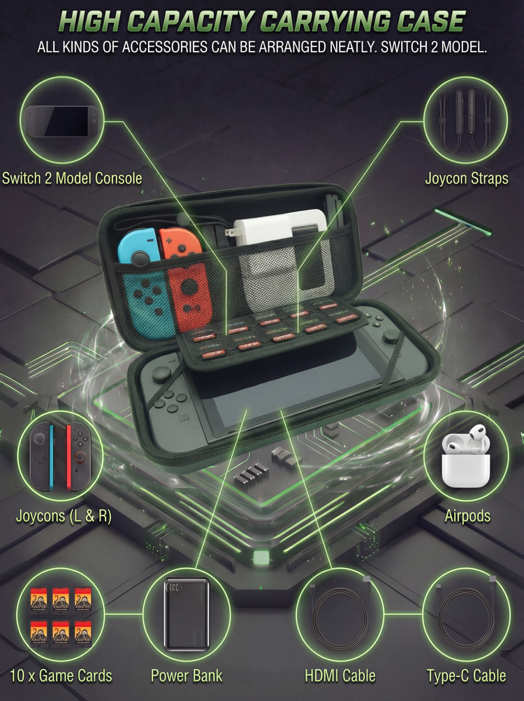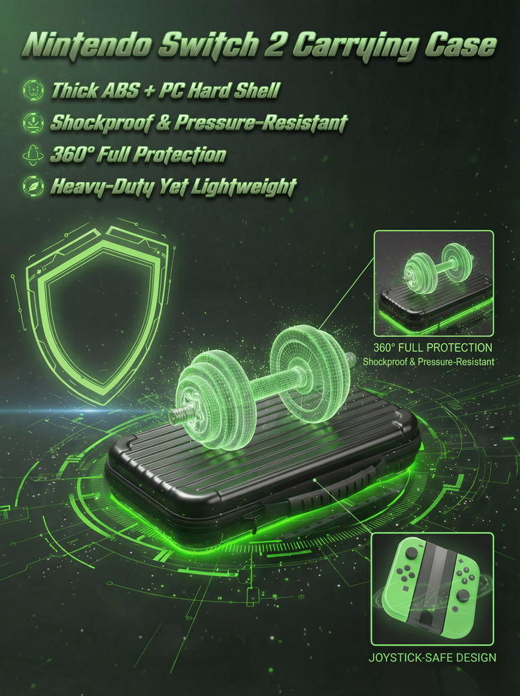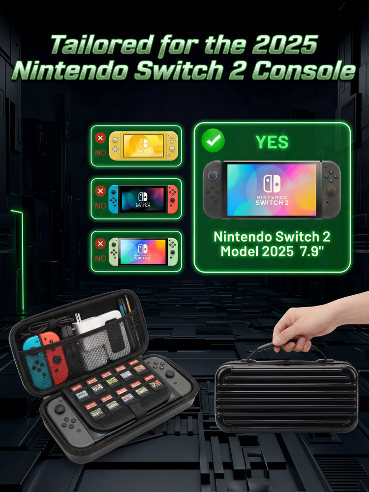 Inspired by premium luggage, this Nintendo Switch 2 carrying case is crafted from PC + ABS luggage-grade materials, combining durable protection with compact, travel-ready design.