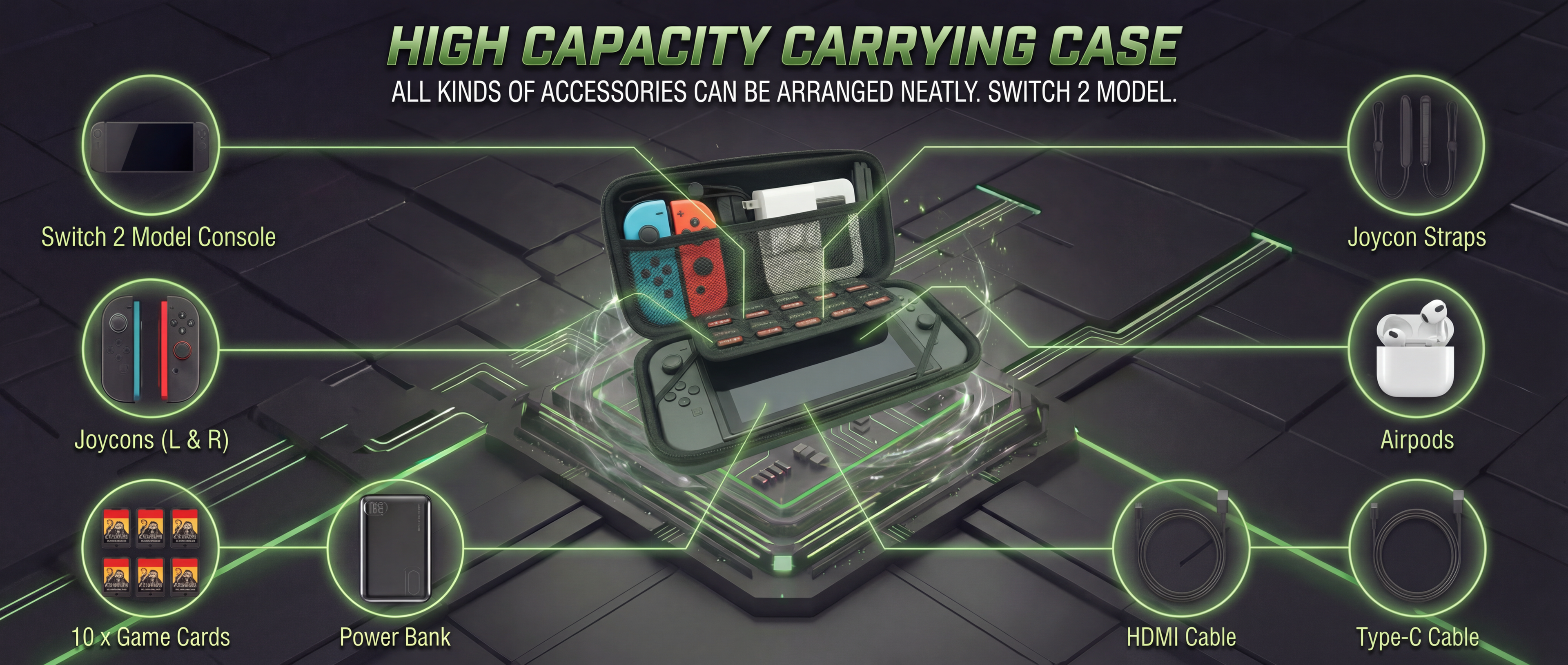 Plush lining cushions your Switch 2 console and accessories.