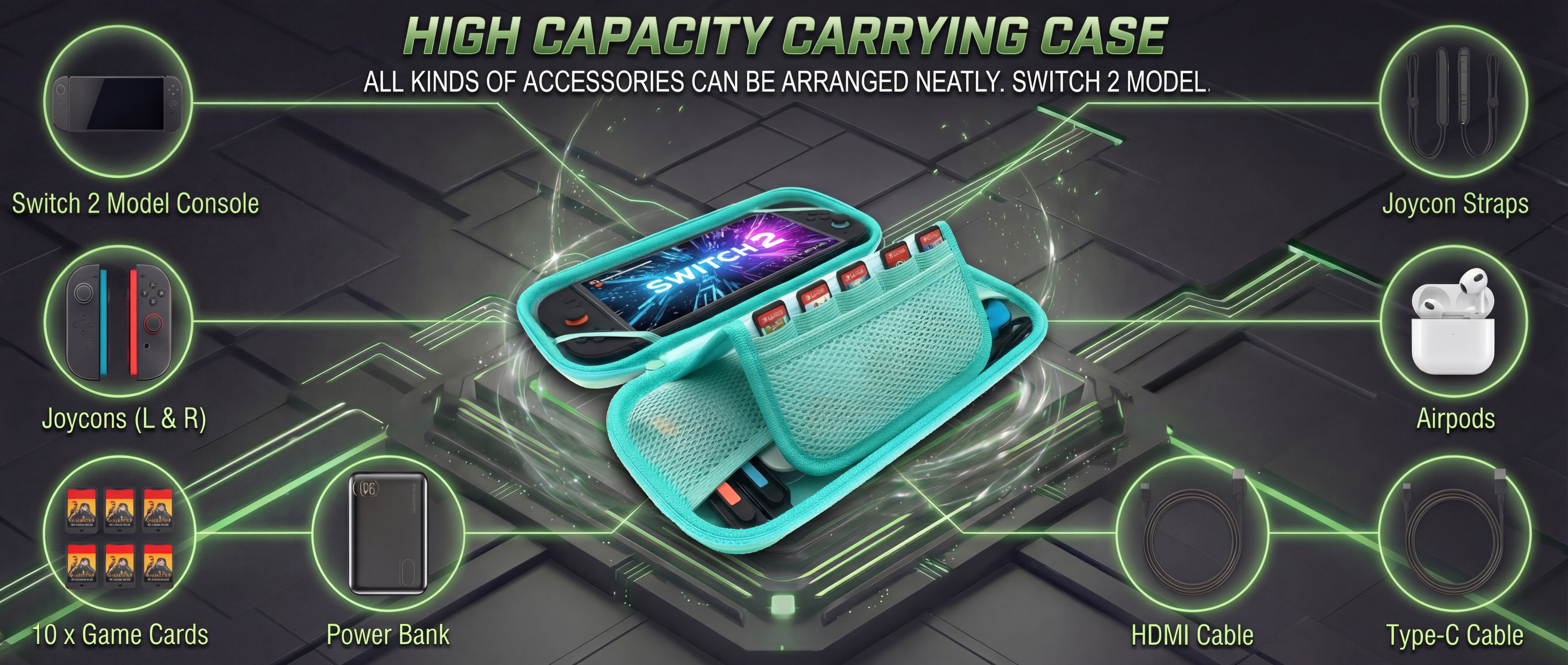 The durable EVA shell shields your Switch 2 from drops, bumps, and pressure. Perfect for daily commuting or long-distance travel where protection matters most.
