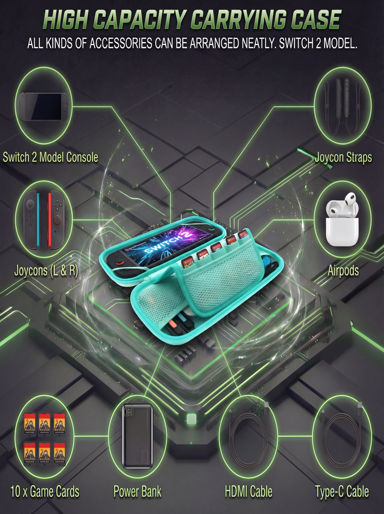 Secure your new console with the ultimate protection. This Turquoise Hard Carrying Case is specifically engineered for the Nintendo Switch 2, addressing the specific size and form factor of Nintendo's latest release.