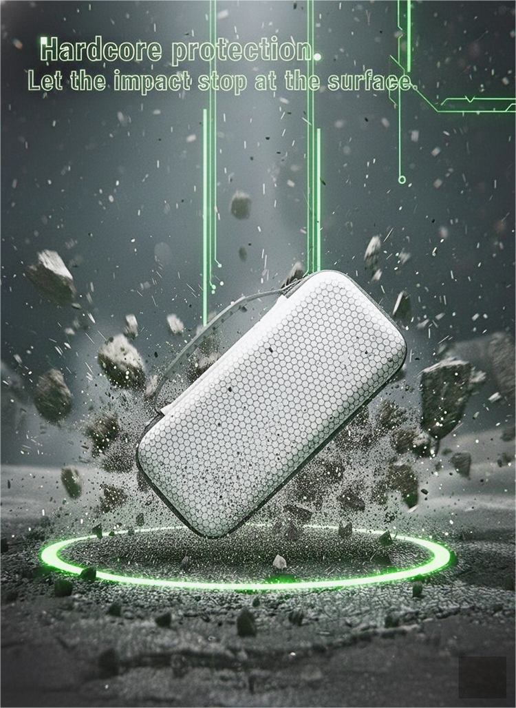 Designed with a futuristic honeycomb-textured exterior, this Switch 2 case delivers premium shock resistance. The rigid EVA shell shields your console from drops, pressure, and daily wear—perfect for travel and everyday protection.