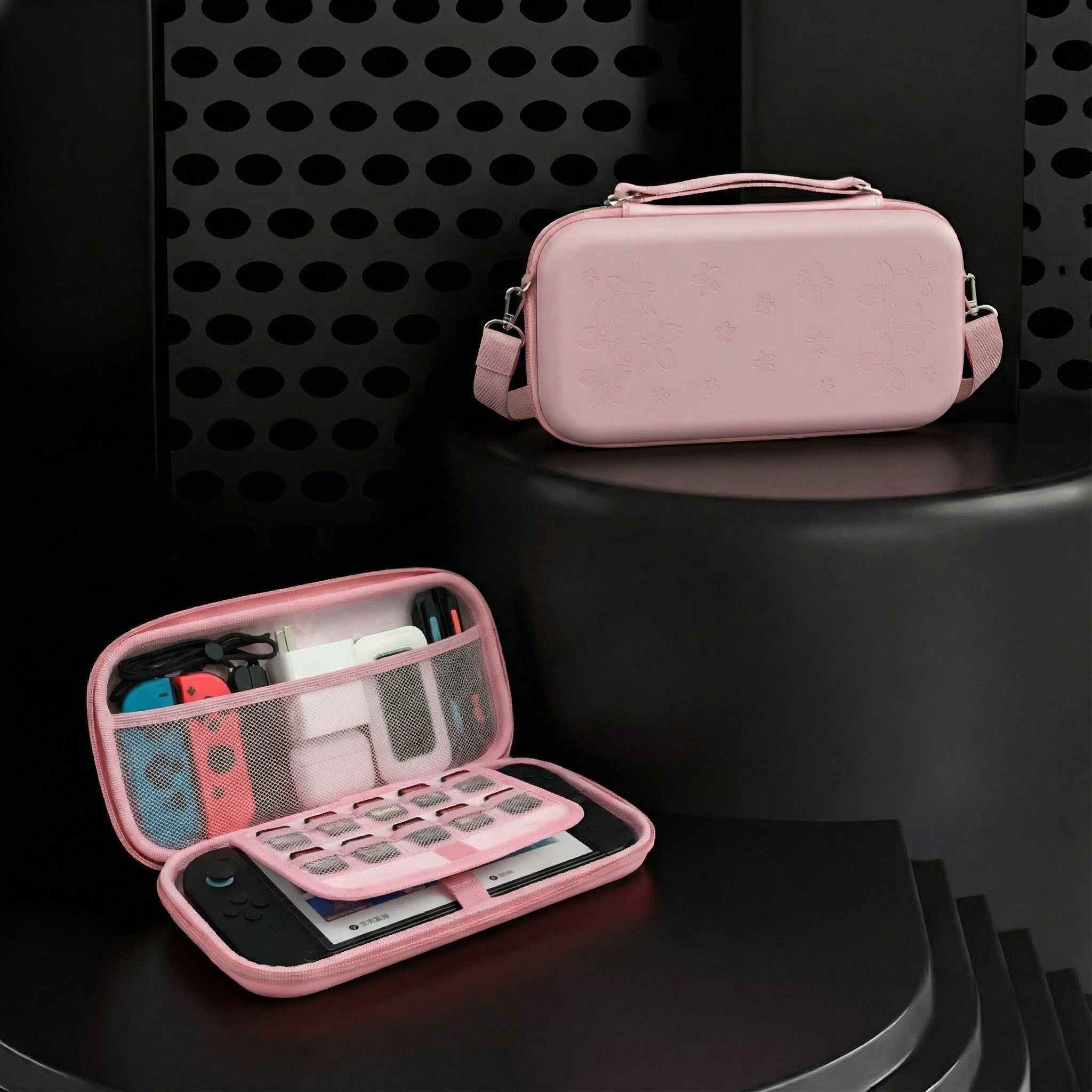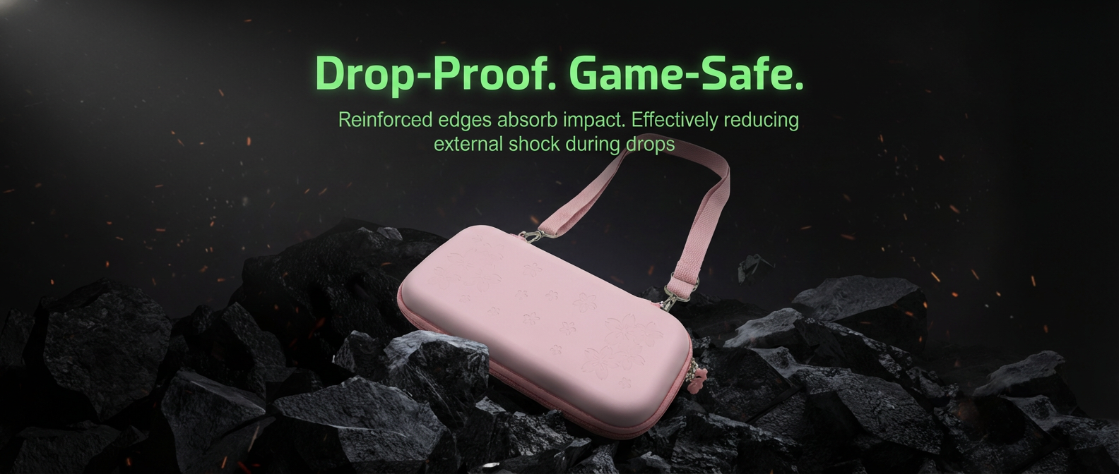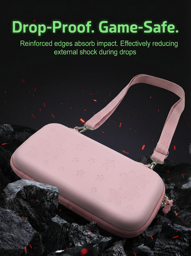 Elevate your gaming setup with our custom-designed Sakura case. The exterior features a stunning 3D embossed cherry blossom pattern on a smooth, matte pink surface. Despite its soft look, the outer shell is crafted from durable EVA material, providing a rugged shield against drops, bumps, and splashes. It’s not just a case; it’s a fashion statement for your Switch 2.