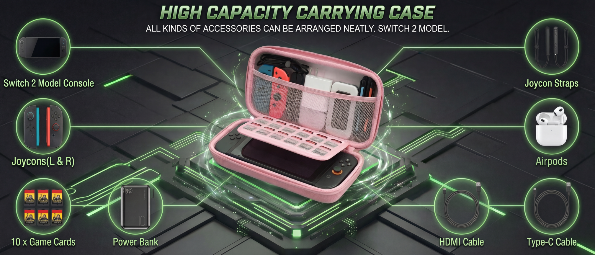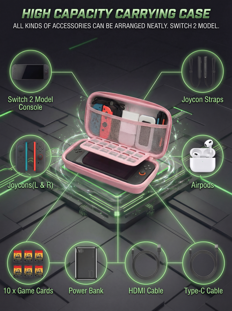Secure Console Fit: The bottom compartment is tailored to fit the Nintendo Switch 2 perfectly, with a soft velvet lining to prevent screen scratches.
